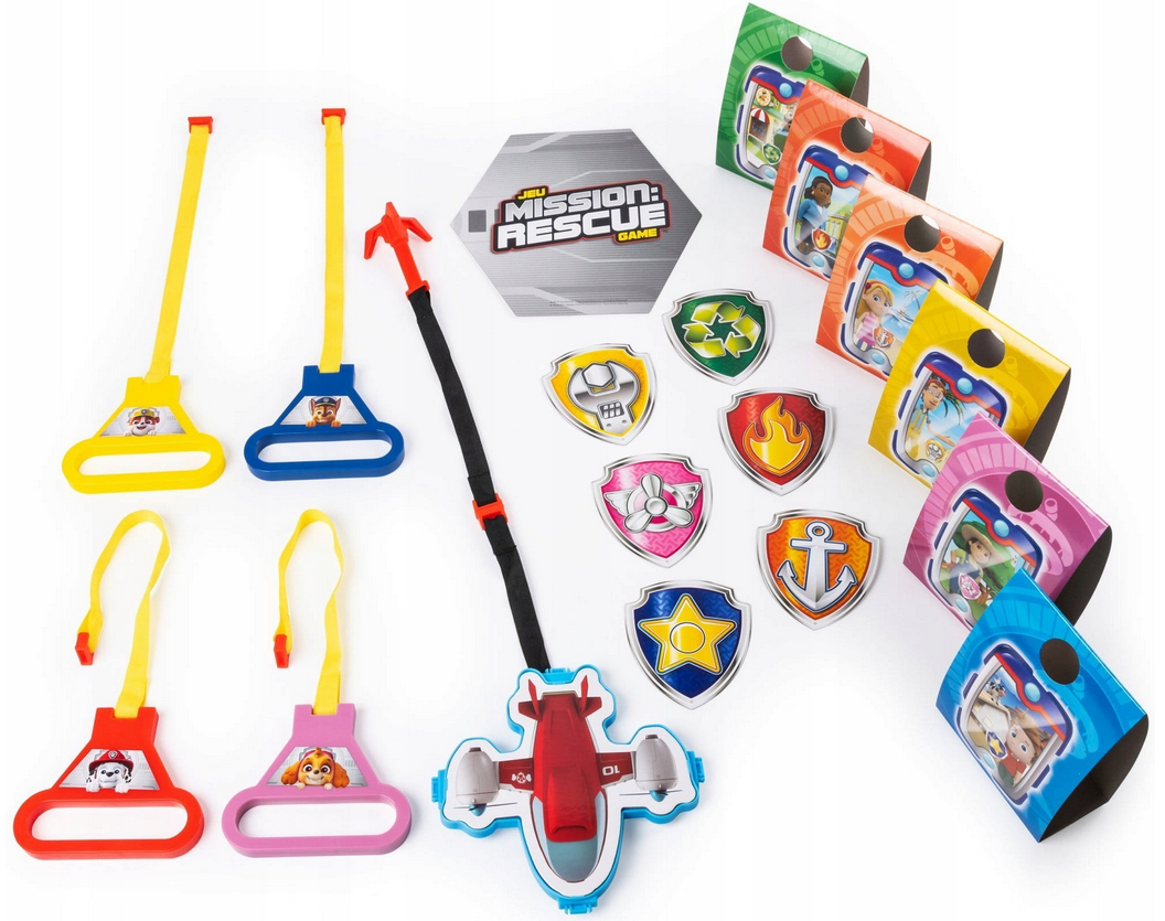 Samolot ratunkowy właśnie wystartował! Chwyć za uchwyt na końcu tasiemki i napinając lub luzując taśmę postaraj się razem ze znajomymi zaczepić na hak, podnieść i przetransportować w bezpieczne miejsce kartoniki z bohaterami.