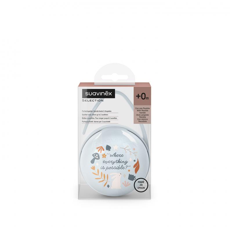 Etui składa się z dwóch oddzielnych części, które można rozdzielić, by przechowywać dwa smoczki w oddzielnych etui.