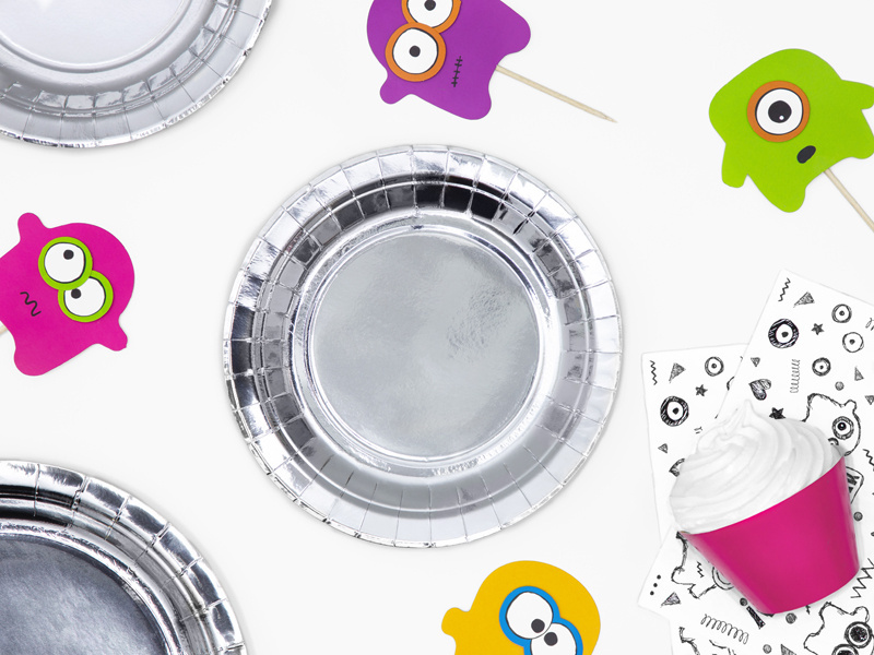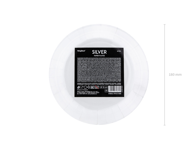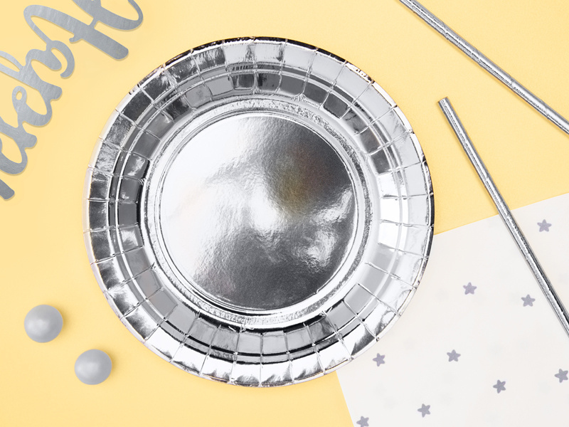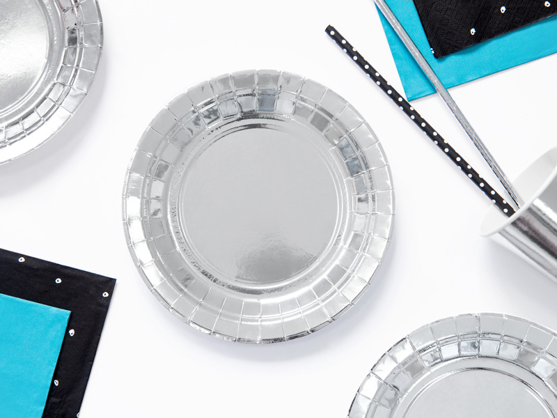 • Talerzyki papierowe srebrny, średnica ok. 18 cm (1 op. / 6 szt.)