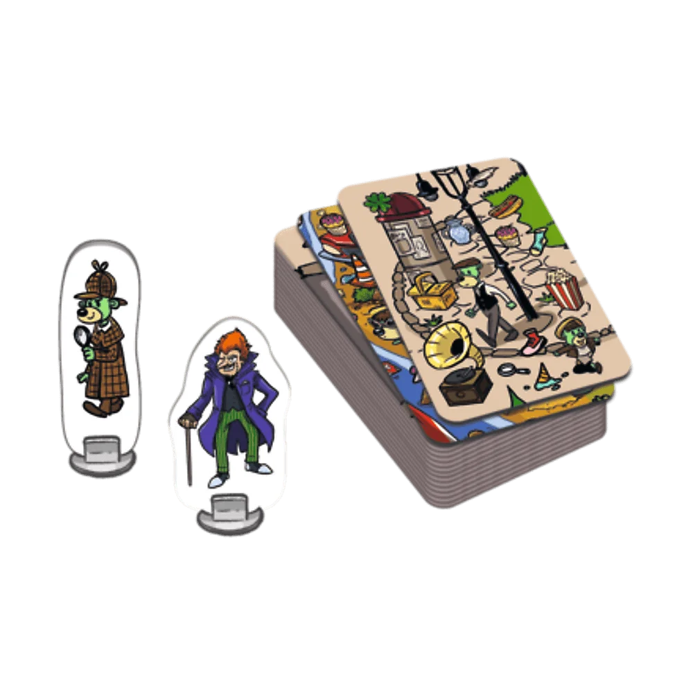 Spy Guy Gra Karciana to szybka i ekscytująca gra obserwacyjna, w której liczy się szybkość i spostrzegawczość. To przenośna wersja kultowej gry Spy Guy, w której wspólnie próbujecie złapać Doktora Moritza.