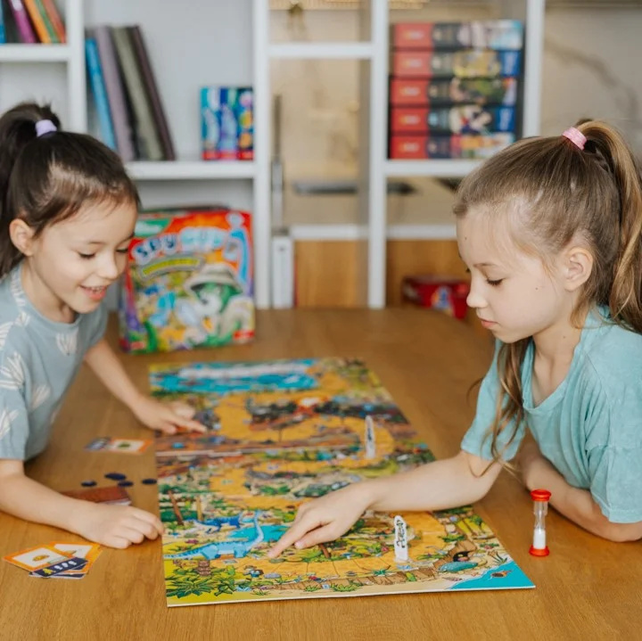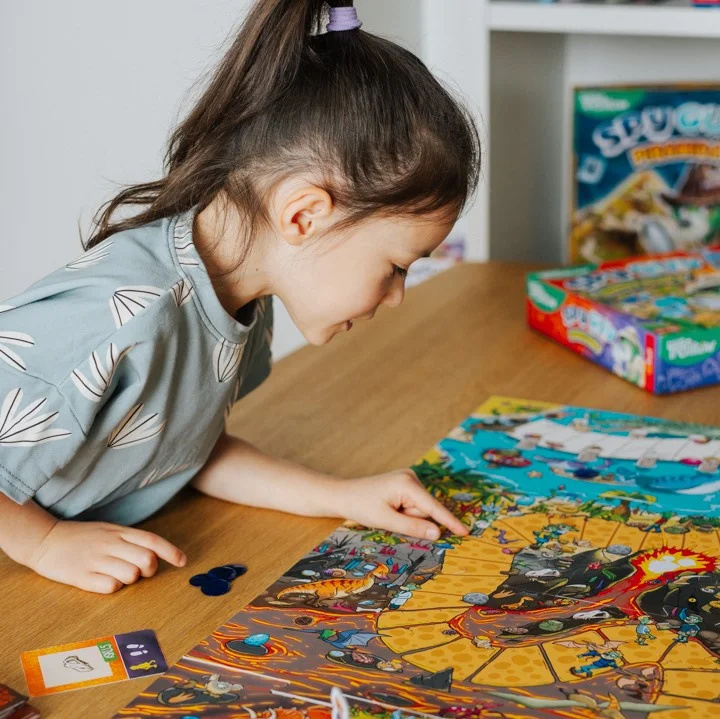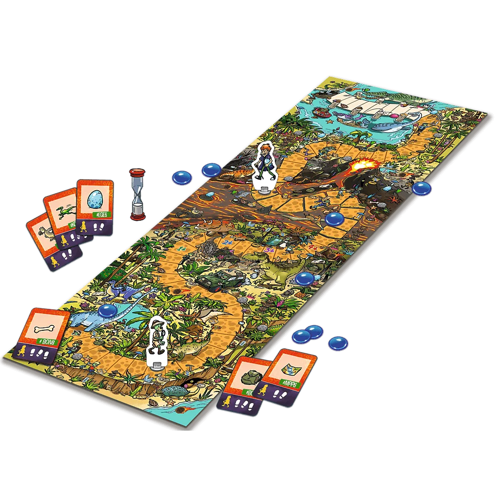 Spróbujcie schwytać złoczyńcę, nim ten ucieknie z parku dinozaurów z niezwykle rzadkim jajem brachiozaura. Ćwiczcie spostrzegawczość, umiejętność skupienia uwagi i współpracy, poszukując poszlak na barwnej, rysunkowej ponadmetrowej planszy.