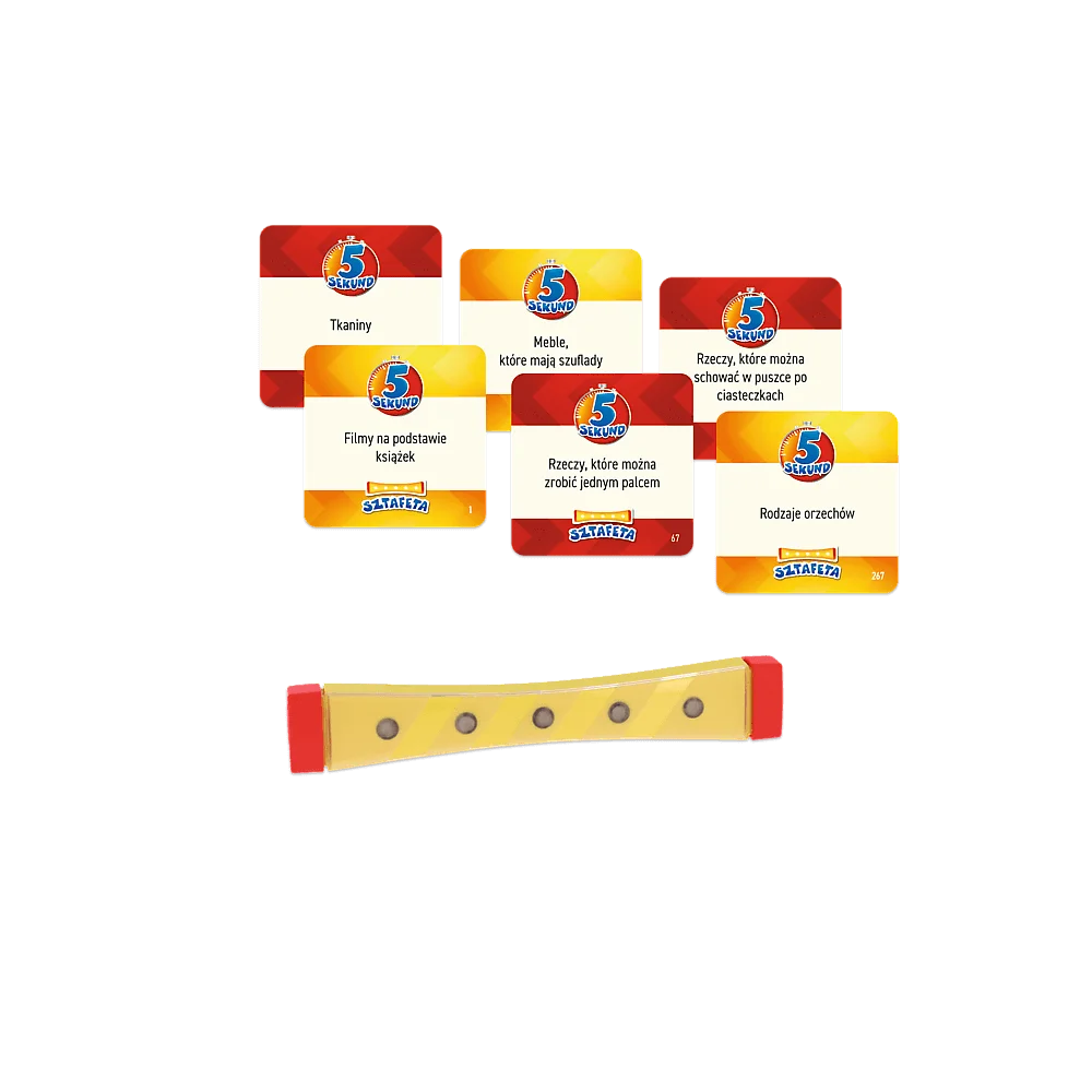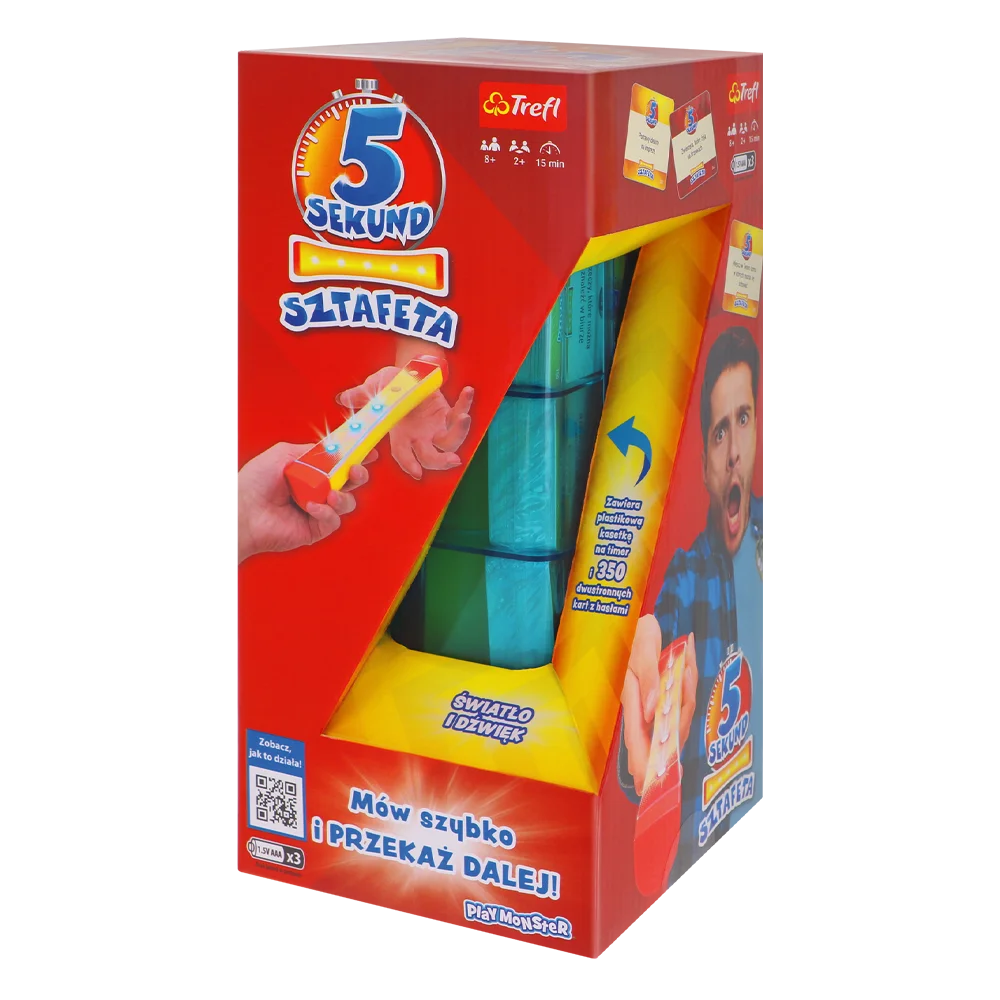 - 5 sekund SZTAFETA to jeszcze bardziej spontaniczna i nieprzewidywalna odsłona kultowej gry, w której szybko myślisz i szybko mówisz.