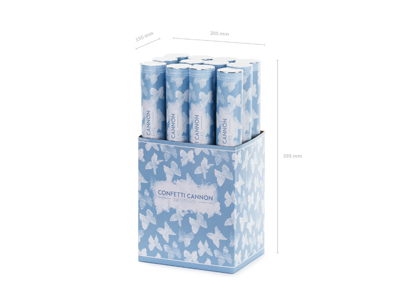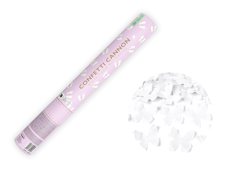 Tuba strzelająca motylkami w kolorze białym, długość 40 centymetrów.