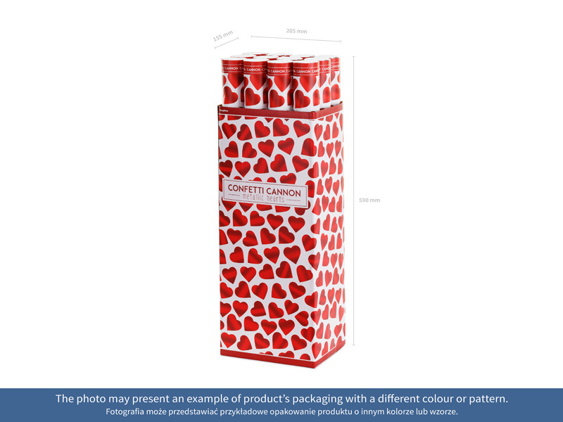 Tuba strzelająca metalizowanymi sercami w kolorze czerwonym, długość 60 centymetrów.