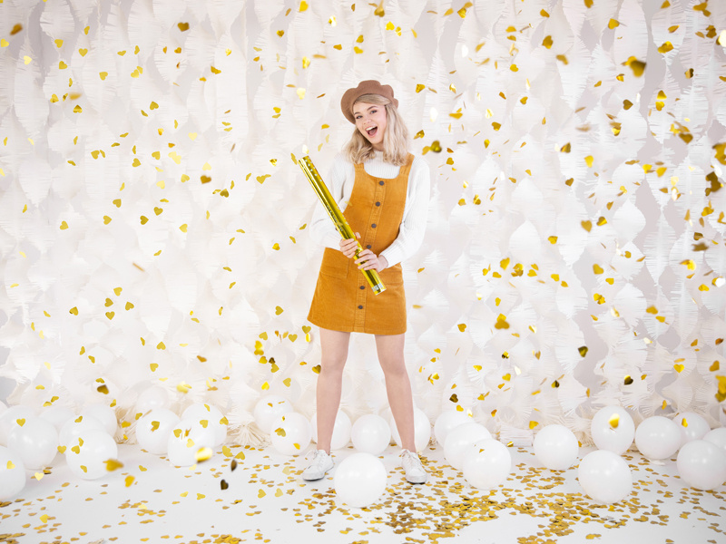 • Tuba strzelająca metalizowanymi sercami w kolorze złotym, długość ok. 60 cm.