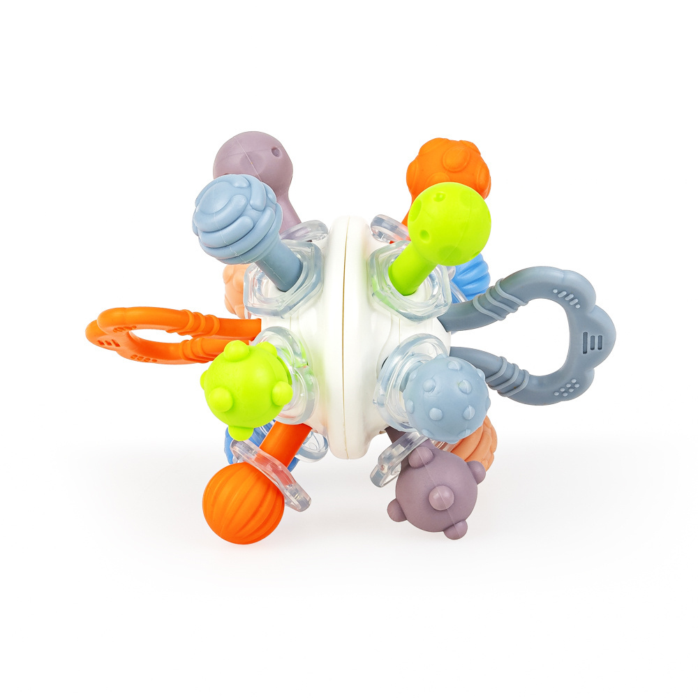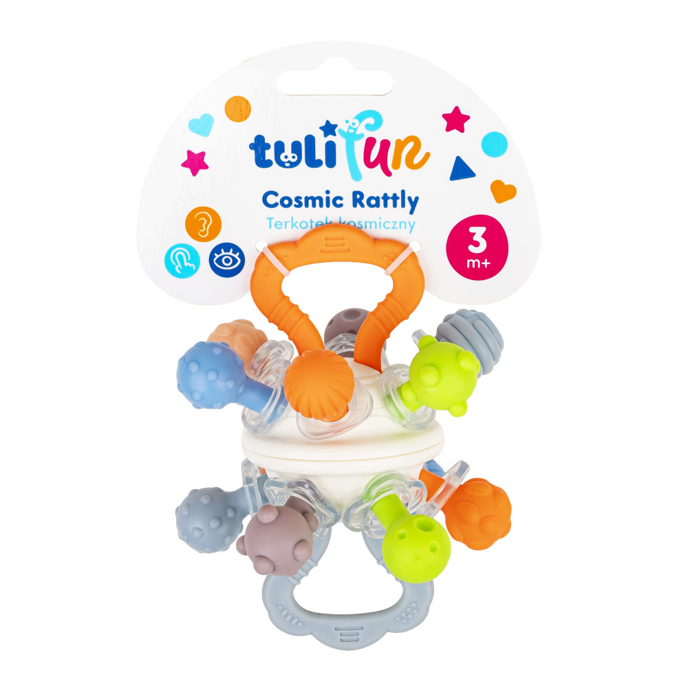 Zarówno uchwyty, jak i fakturowane kuleczki sprawdzą się świetnie w roli gryzaka, co czyni terkotka nie tylko wesołą zabawką, ale też przydatnym akcesorium dla każdego bobasa.