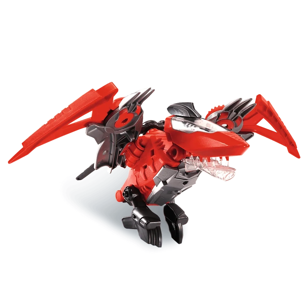 Przekształć dinozaura w pojazd lub na odwrót i zobacz jak zmieniają się animacje na ekranie LCD. Specjalne przyciski aktywują dźwięki, wypowiedzi i ruchome elementy, dzięki czemu zabawa jest jeszcze ciekawsza!