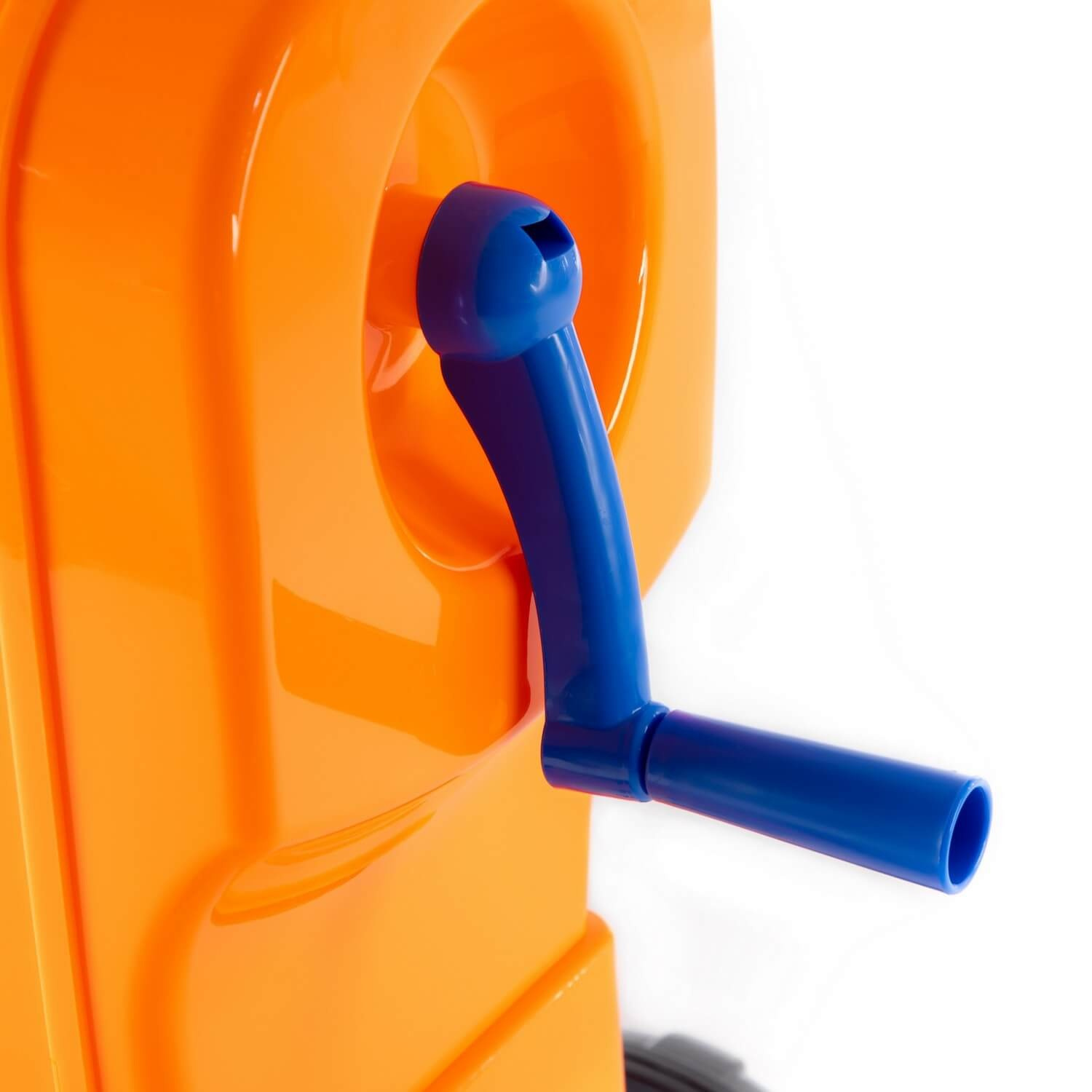 Betoniarka posiada obrotową gruszkę, która wprawiana jest w ruch przy pomocy korby. Kręcenie korbą sprawia, że bęben się obraca a wraz z nim wszystko co w środku umieszczono.