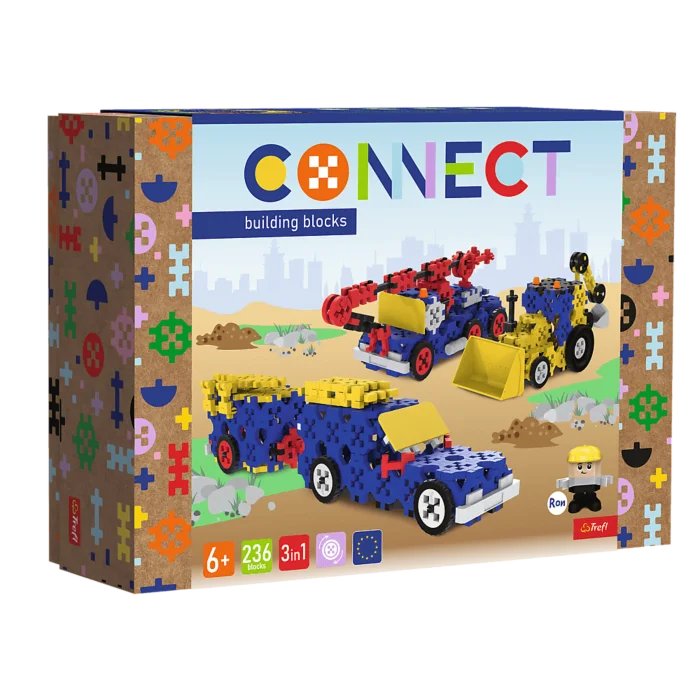 Zestaw klocków Connect 3w1: Pojazdy budowlane / SUV z przyczepą