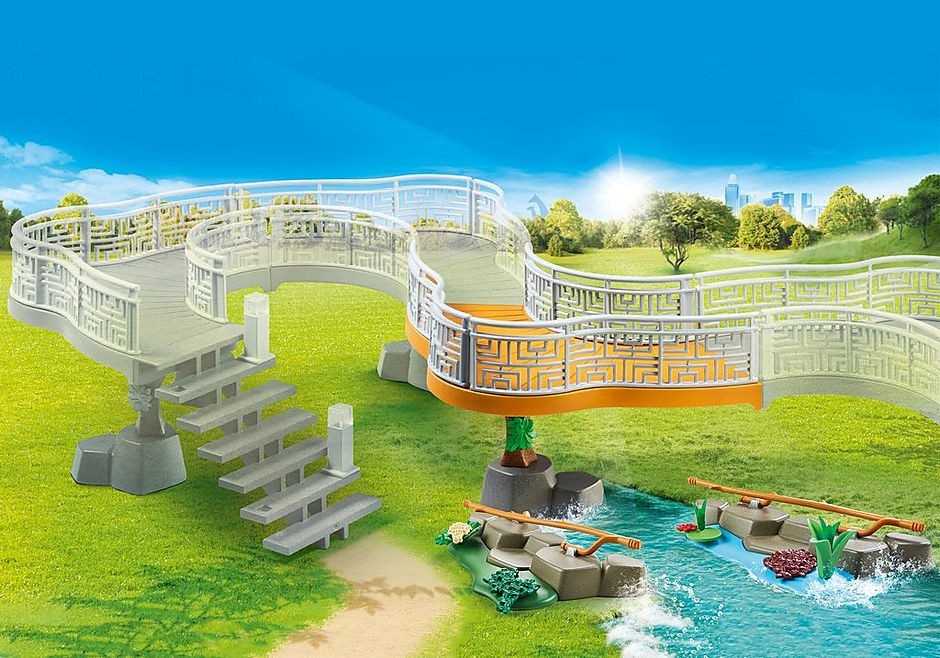 • Akcesoria: 1 przedłużenie ścieżki obserwacyjnej z elementem rozgraniczającym, 1 element rozgraniczający fosę z roślinami wodnymi, 1 element rozgraniczający trawnik z roślinami.