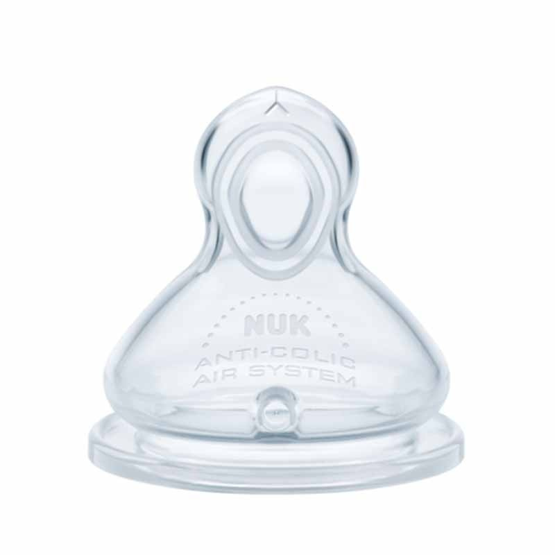 Na podstawie naturalnego modelu Smoczki do butelki NUK First Choice+ są szczególnie zbliżone do kształtu brodawki sutkowej mamy w czasie karmienia. Dzięki temu nie tylko wspierają zdrowy rozwój jamy ustnej dziecka, lecz także są bardzo dobrze akceptowane przez dzieci. Ich ulepszony odpowietrzacz zapewnia naturalny wypływ pokarmu i zmniejsza ryzyko kolki.