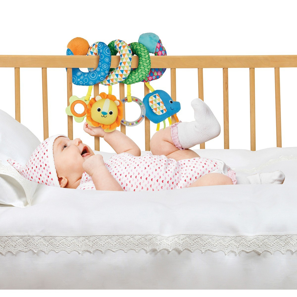 Kształt zabawki pozwoli ją opleść na wózku, foteliku/nosidełku lub łóżeczku.
