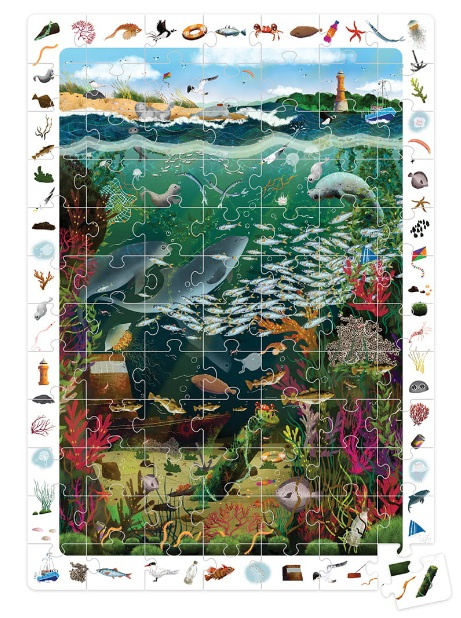 Edukacyjne 84-elementowe puzzle przedstawiają podwodny świat i jego mieszańców.