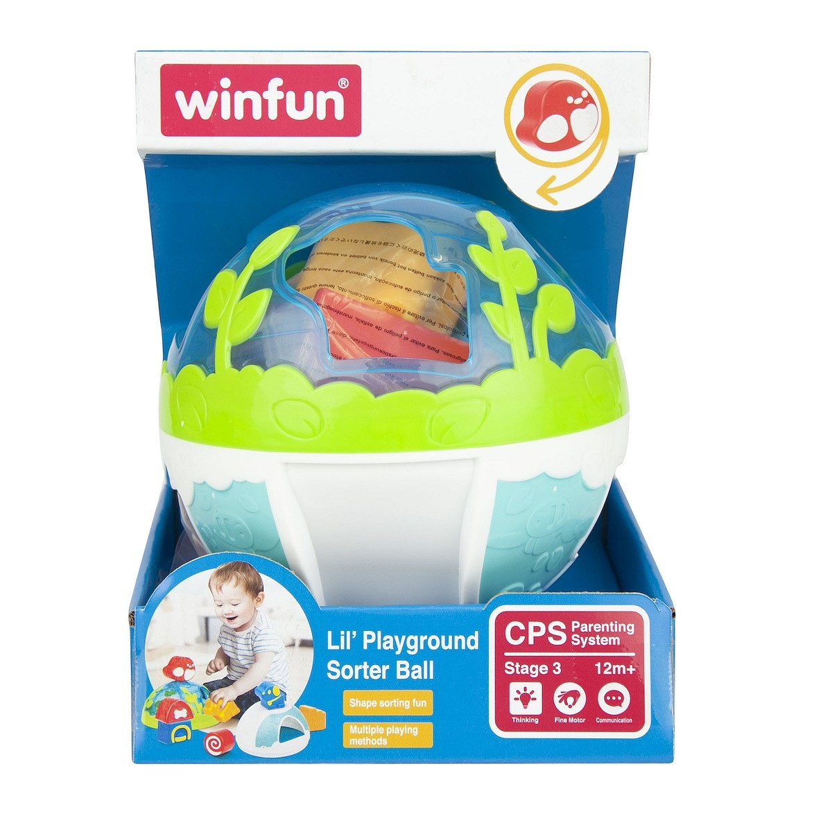 Sorter ma 7 kolorowych elementów, które zachęcają malucha do ich dopasowywania w odpowiednie otwory w kuli.