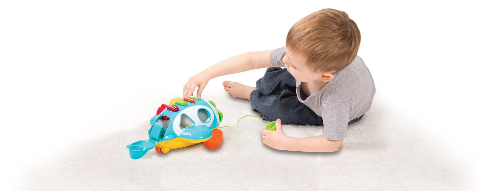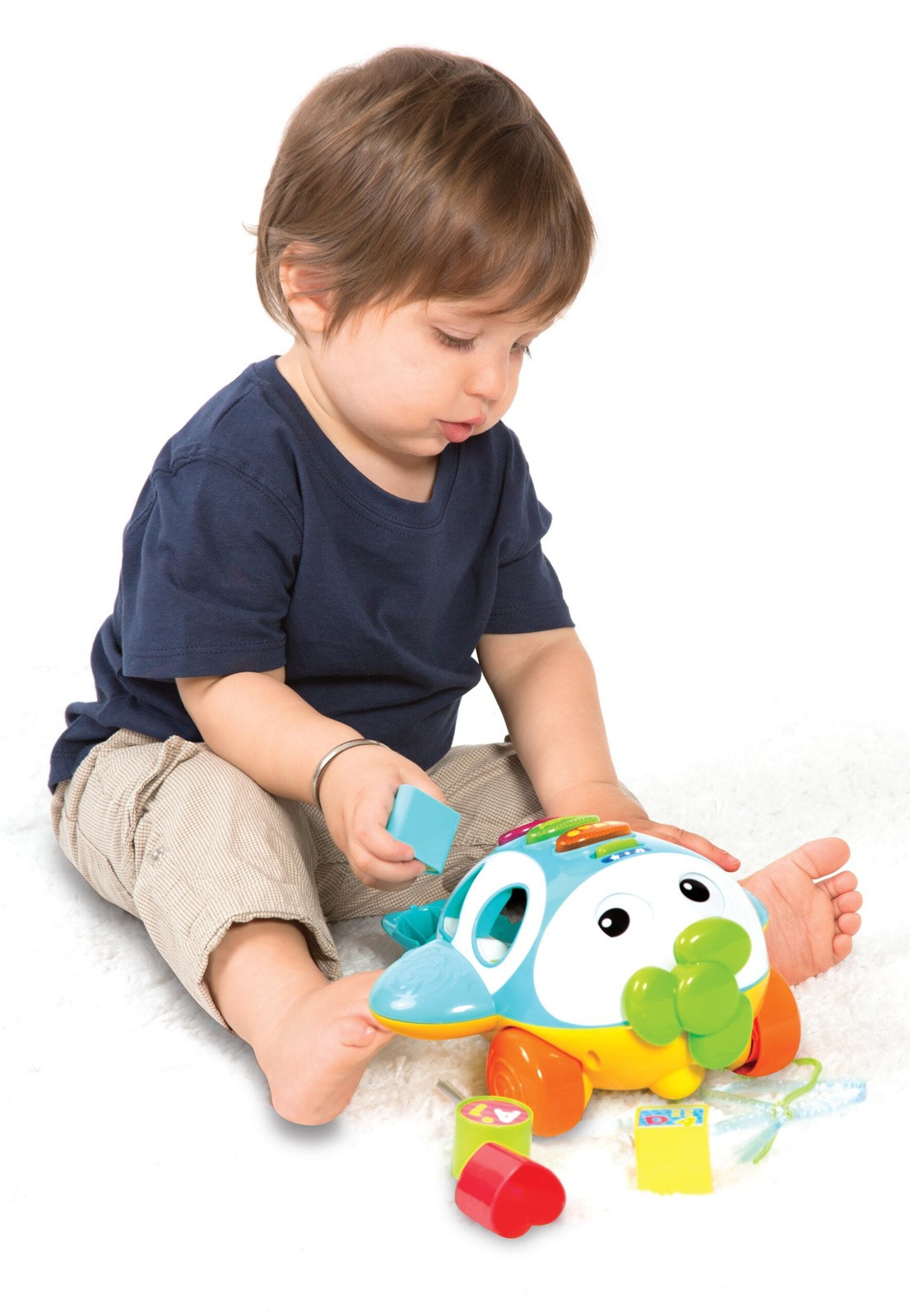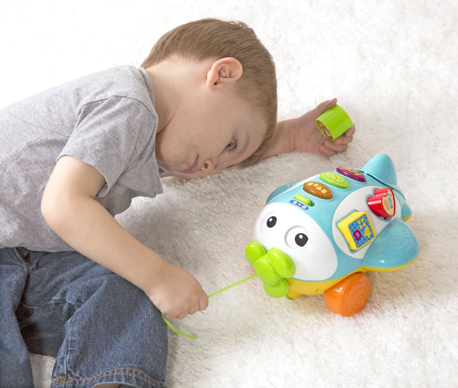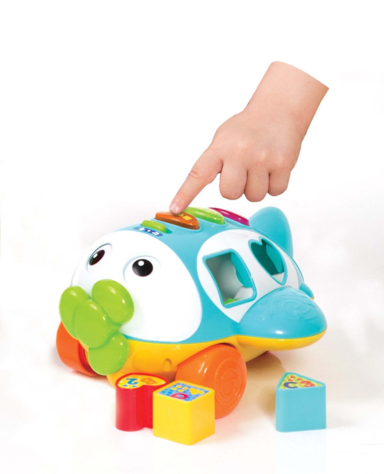 Radosny samolocik zachęca dziecko do zabawy, wydając zabawne dźwięki i grając melodyjki.
