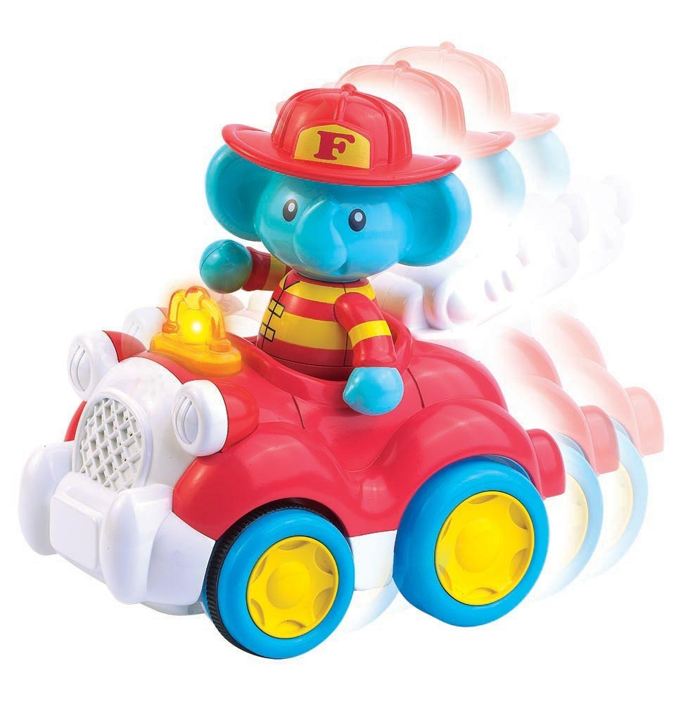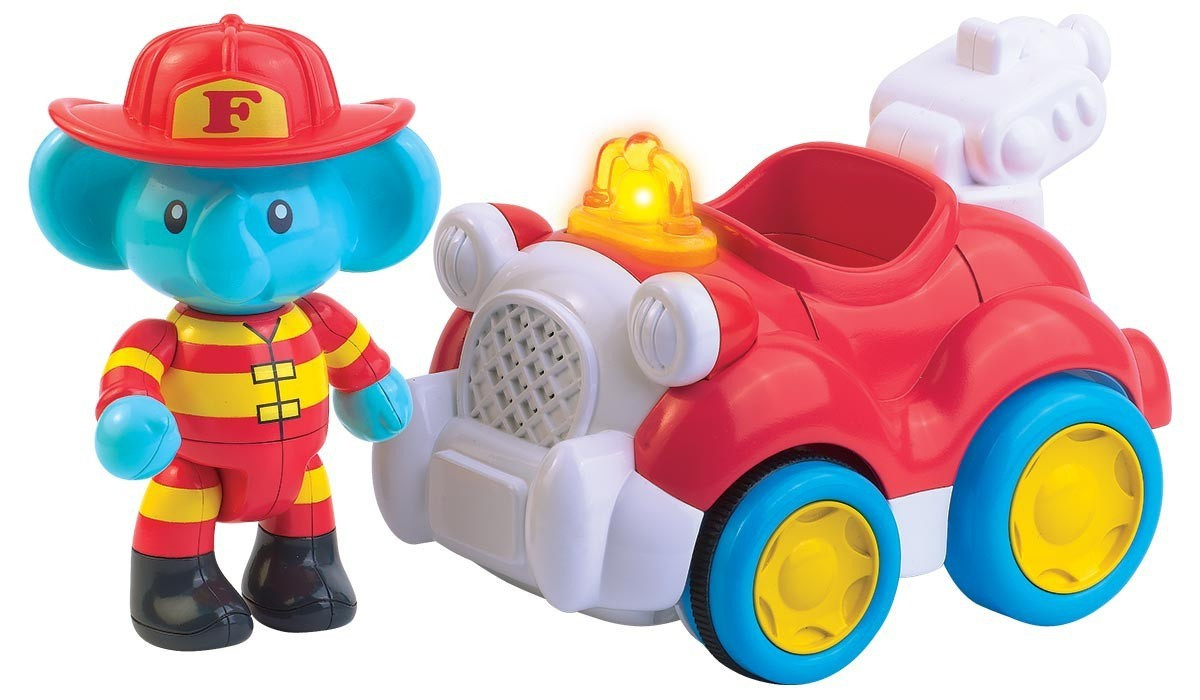 Słonika można wyjąć z pojazdu i dowolnie przekręcać jego głowę, rączki i nóżki, które przy poruszaniu wydają zabawny, terkoczący dźwięk. Naciśnij na biały element znajdujący się z tyłu samochodziku, a pojedzie on do przodu wydając ostrzegawcze, realistyczne dźwięki i błyskając światełkiem. Kiedy umieścisz Florka w wozie strażackim i naciśniesz na niego usłyszysz wesołą piosenkę.