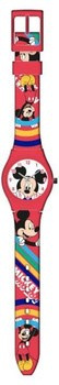 Zegarek na rękę z tarczą analogową i regulowanym paskiem który przedstawia wizerunek Myszki Miki.