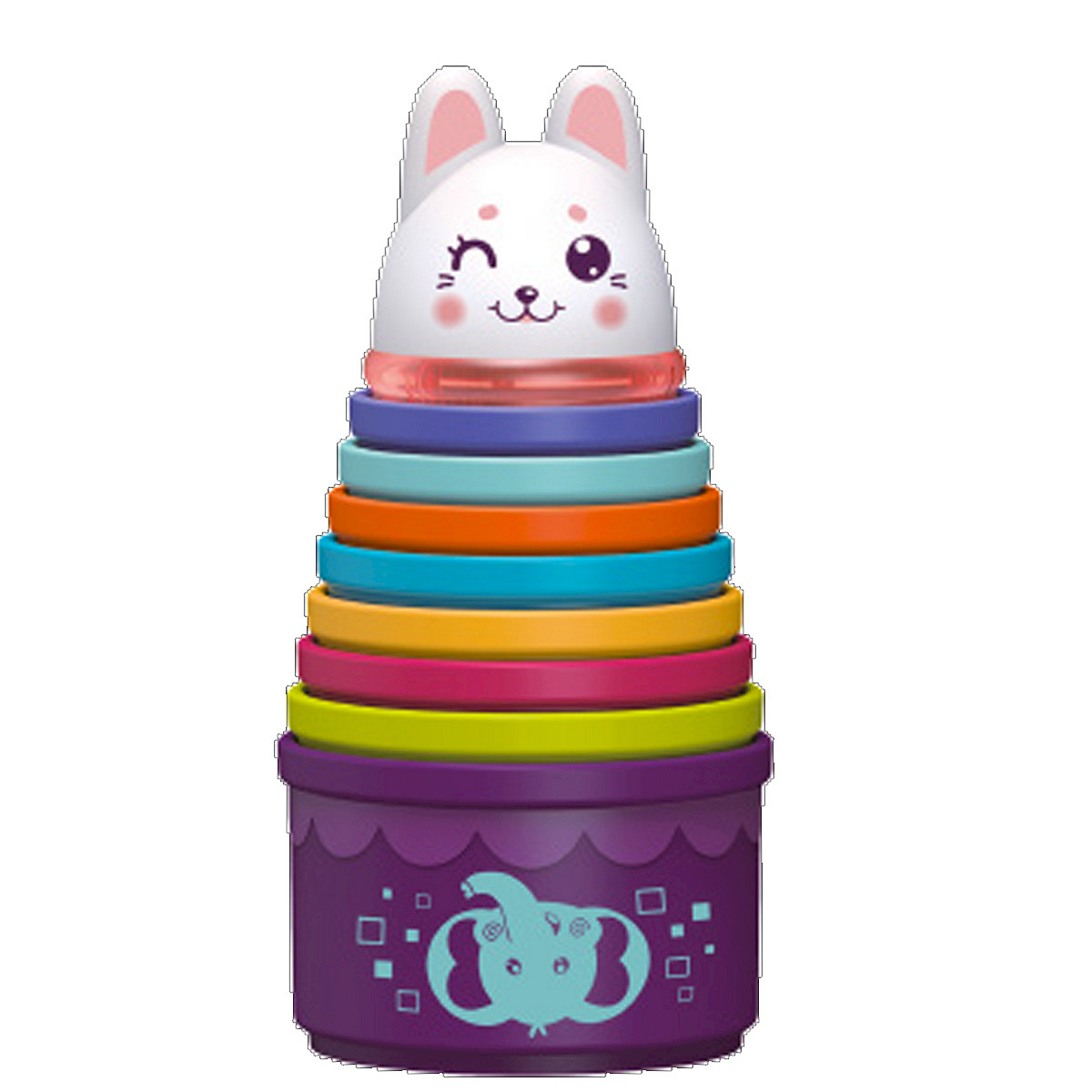 - zajączek z kuleczkami - grzechotka to główny lokator wysokiego zamku - klocek ten postaw na szczycie piramidy